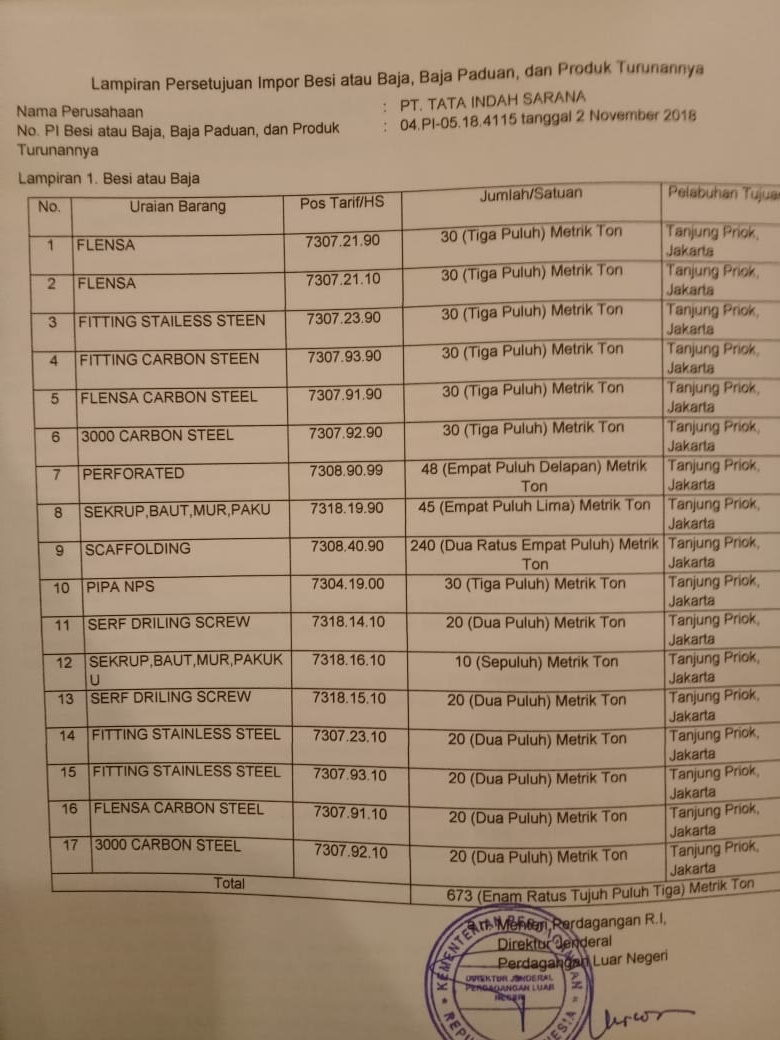 Dapatkan Spesifikasi Harga Jasa import pi besi baja murah Produk Terbaik dari PT indah sarana jasa import export